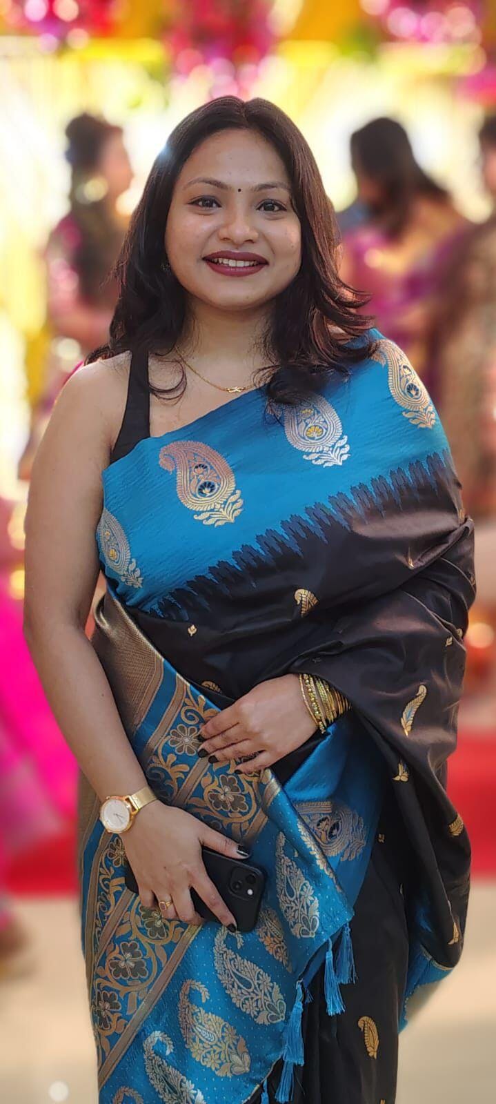 Black Mango Butti Soft Silk Saree
