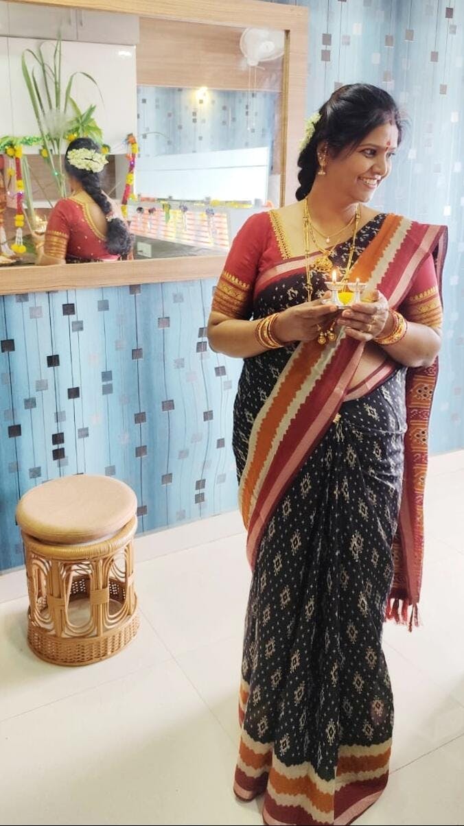 Drape yourself in effortless charm with our Pure Cotton Viscose Ikkat Print Saree. Featuring bold and beautiful Ikkat-inspired prints, every detail celebrates the age-old weaving traditions reimagined for today’s woman. The geometric patterns, rich colors, and fluid texture make this saree a standout piece for any wardrobe.