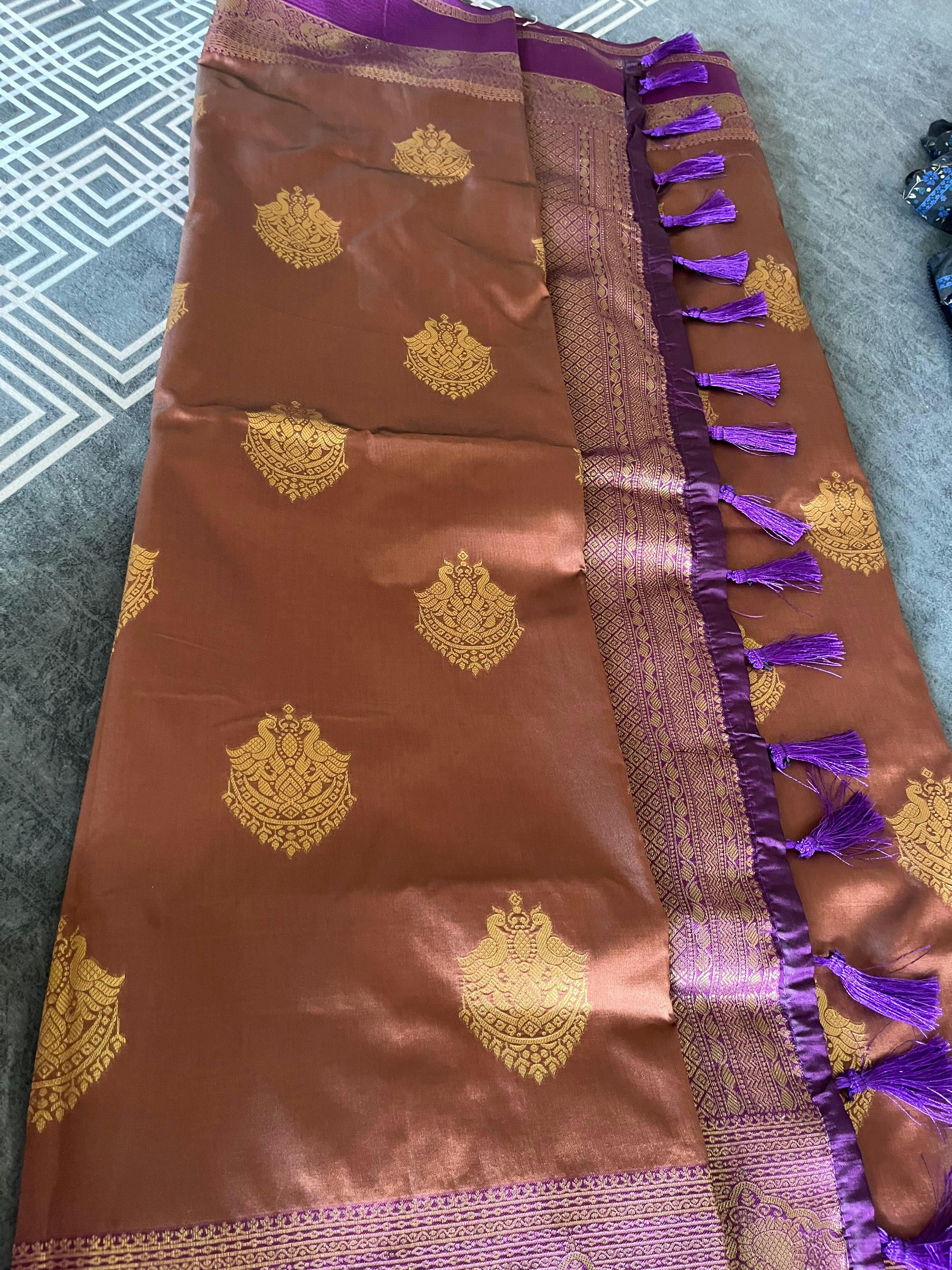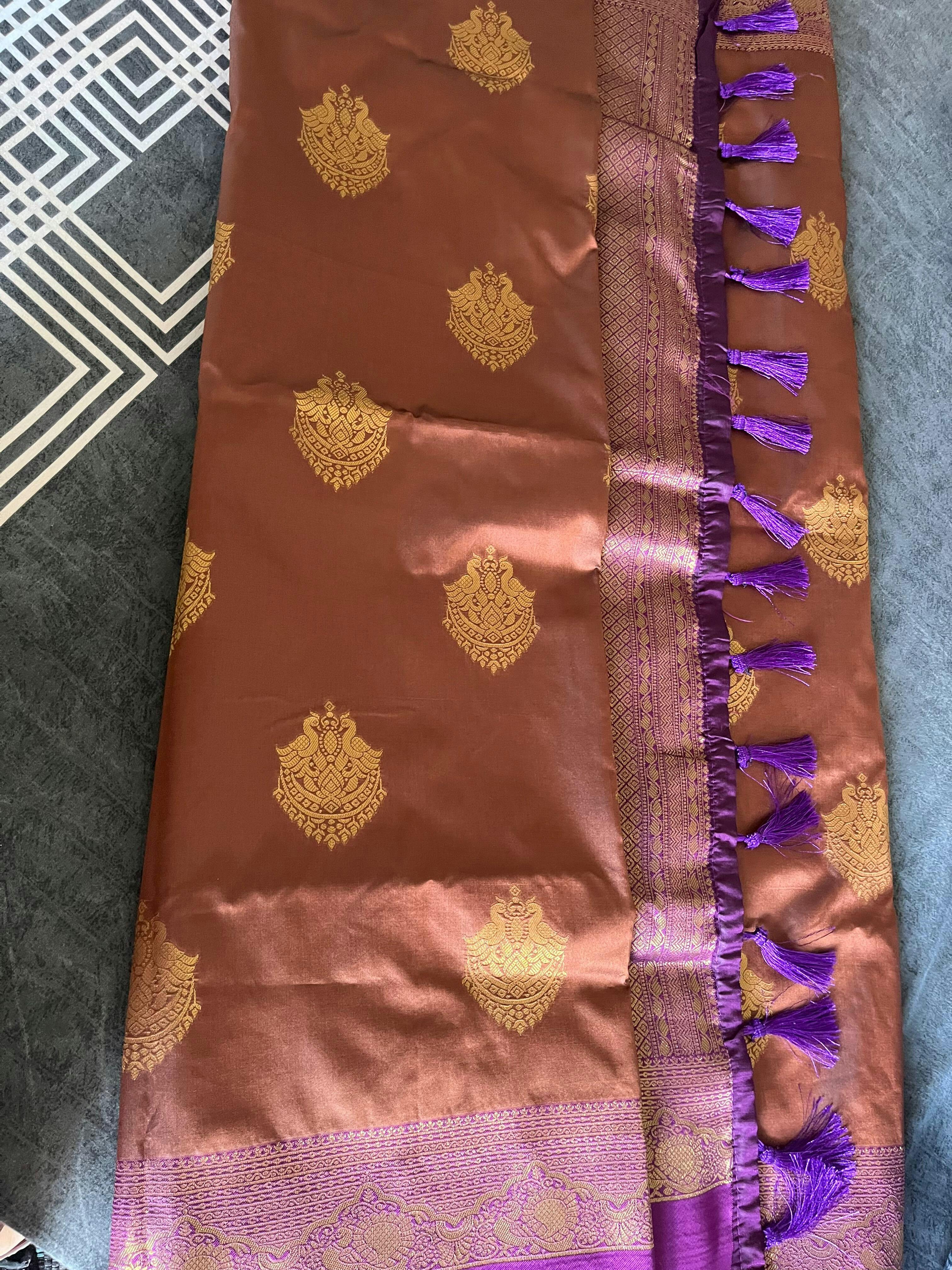 Drape yourself in timeless elegance with this luxurious soft silk saree, beautifully woven with heritage-inspired gold zari buttas that evoke regal charm. The rich Bantex border adds a bold, structured finish, enhancing the overall opulence of the design. Perfectly balancing tradition and sophistication, this saree is ideal for weddings, festive celebrations, and grand occasions where you wish to make a graceful statement.