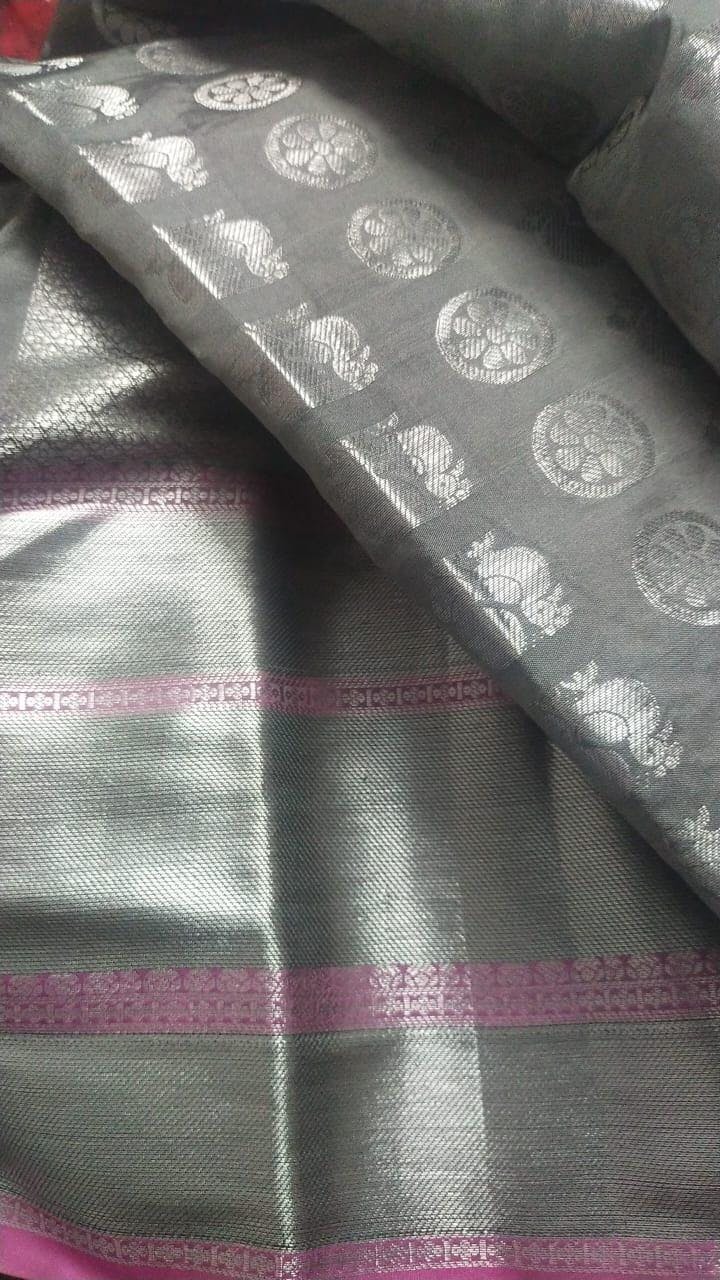 Kanjivaram Silk Grey Colour Zari Woven Design Saree