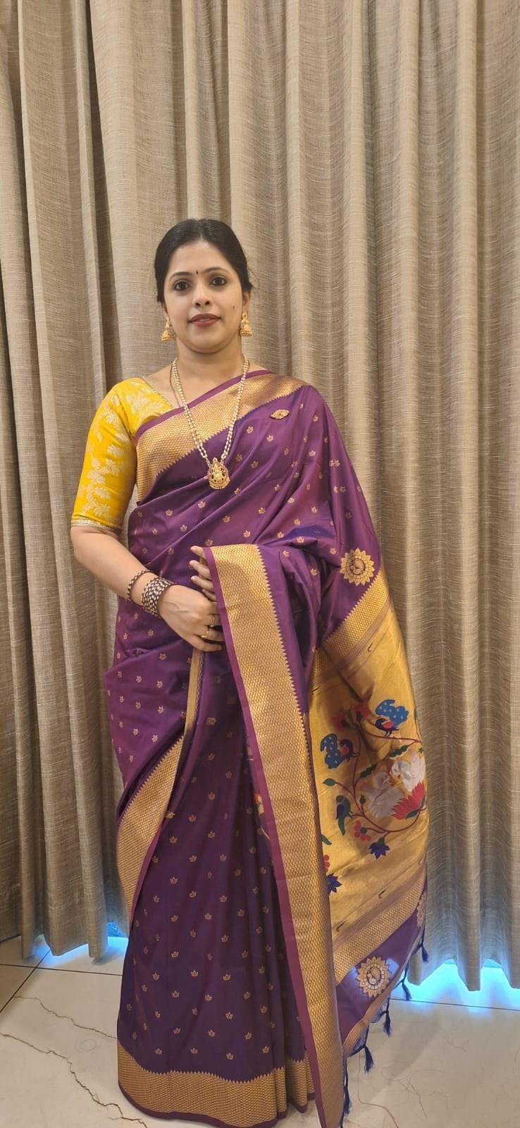 Adorn yourself in artistic elegance with this Soft Silk Saree, featuring a breathtaking Meenakari-rich pallu that showcases exquisite craftsmanship. The intricate swan motifs symbolize purity and grace, while the Yevla-inspired pattern adds a touch of royal heritage to the drape.perfect for weddings, festive occasions, and moments that deserve a regal statement.